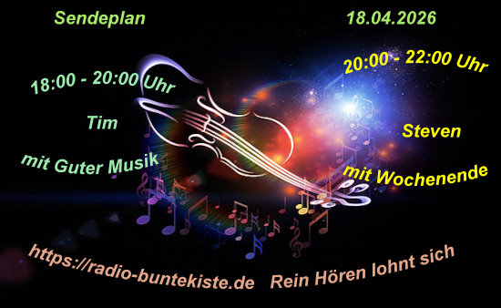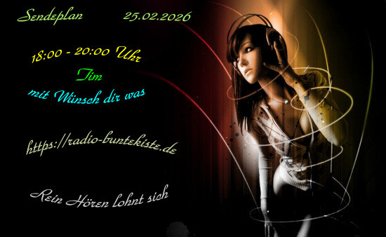 Willkommen bei Radio Buntekiste wir wünschen viel Freude mit unserer Musik ! Kommt auch mal zu uns in den Chat und lernt uns kennen.